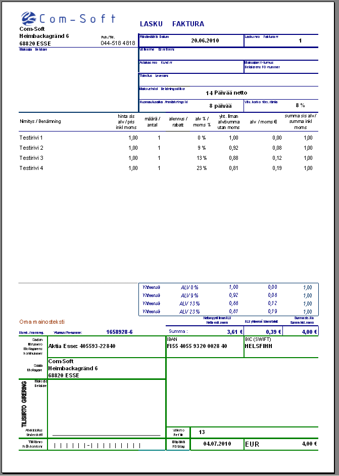kenttiin. Näet siis lomaketta pohjana täyttäessä. Com-Soft laskulomakkeella