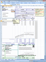 Fakturan fyller du behändigt i med denna Excel-fakturabotten. Beräkningsoperationerna sköter om att räkna ihop summor och moms samt radvisa summor exkl. moms. Denna blankett har också en funktion där du radvis kan ändra moms-% och den gör också moms-sammandrag ner på fakturan.